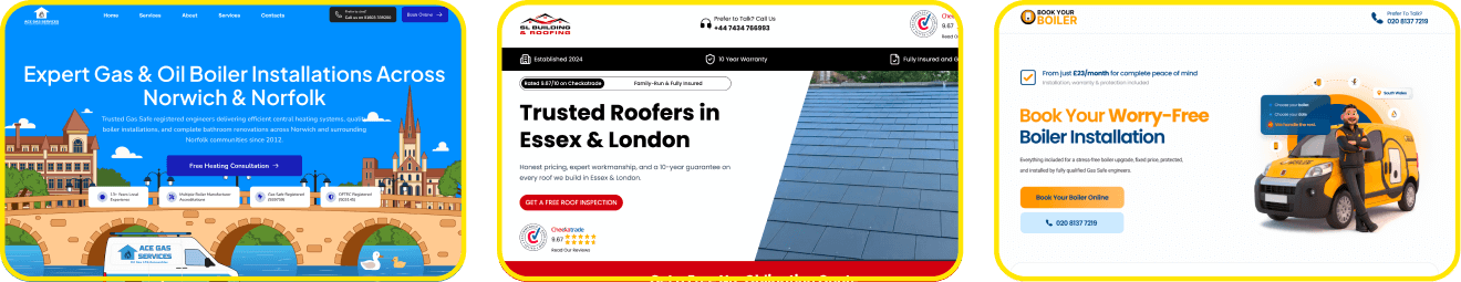 Your website shouldn’t just “look nice.” It should win you work. We create professional, lead-generating websites designed to position you as the trusted choice in your area — without the usual £1,000+ upfront build fees.